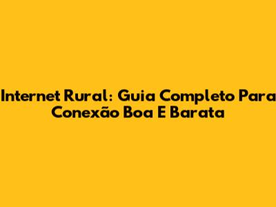 Internet Rural: Guia Completo Para Conexão Boa E Barata