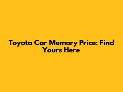 Toyota Car Memory Price: Find Yours Here