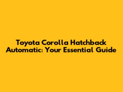Toyota Corolla Hatchback Automatic: Your Essential Guide