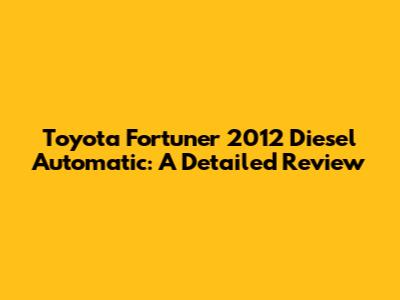 Hey guys! Let's dive deep into the Toyota Fortuner 2012 Diesel Automatic. This SUV has been a popular choice for many, and for good reason. It combines ruggedness, reliability, and a touch of luxury, making it a versatile vehicle for both city commutes and off-road adventures. In this article, we’ll cover everything you need to know about this model, from its engine and performance to its interior, exterior, and overall driving experience. Whether you're considering buying one or just curious, stick around to get the full scoop.