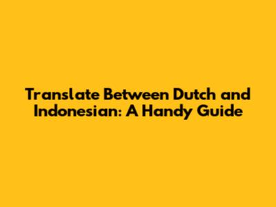 Translate Between Dutch And Indonesian: A Handy Guide