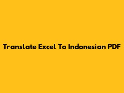 Translate Excel To Indonesian PDF