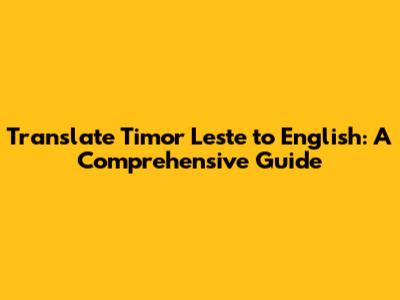 Translate Timor Leste To English: A Comprehensive Guide