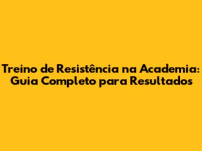 Treino De Resistência Na Academia: Guia Completo Para Resultados