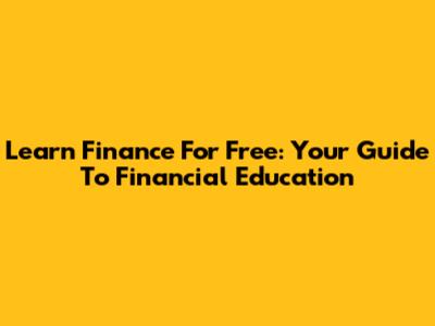 Learn Finance For Free: Your Guide To Financial Education