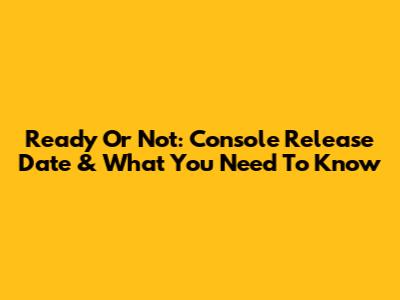 Ready Or Not: Console Release Date & What You Need To Know