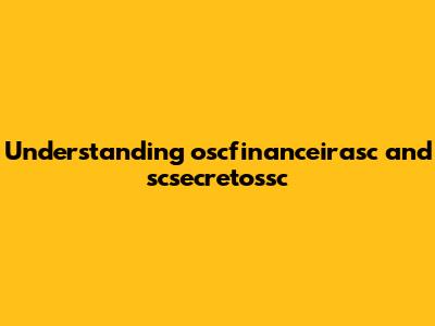 Understanding Oscfinanceirasc And Scsecretossc