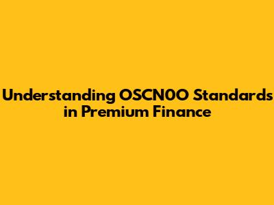 Understanding OSCN0O Standards In Premium Finance