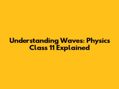 Understanding Waves: Physics Class 11 Explained