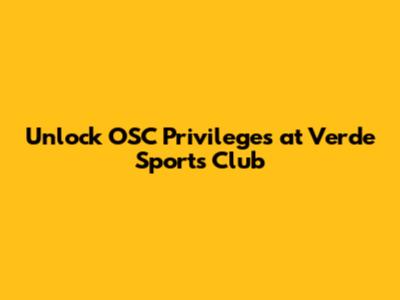 Unlock OSC Privileges At Verde Sports Club