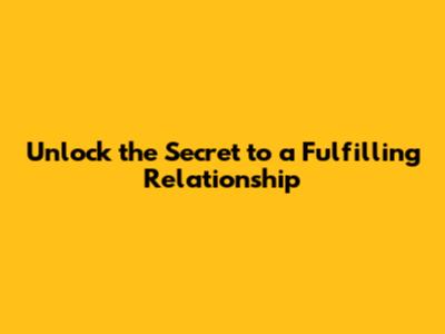 Unlock The Secret To A Fulfilling Relationship