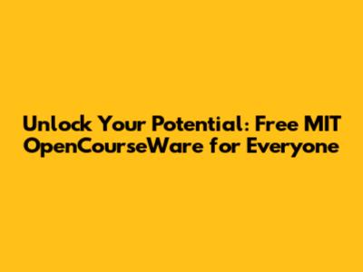 Unlock Your Potential: Free MIT OpenCourseWare For Everyone