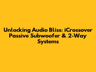 Unlocking Audio Bliss: ICrossover Passive Subwoofer & 2-Way Systems