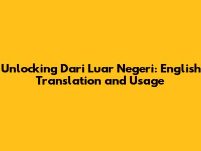 Unlocking 'Dari Luar Negeri': English Translation And Usage