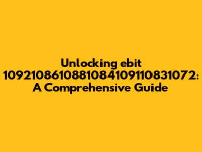 Unlocking Ebit 1092108610881084109110831072: A Comprehensive Guide