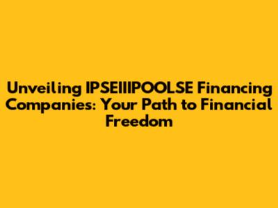Unlocking Financial Solutions: Exploring IPSEIIIPOOLSE Financing