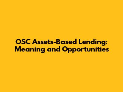Unlocking OSC Assets-Based Lending: Meaning & Opportunities
