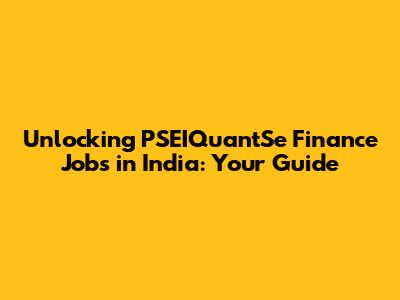 Where to Find PSEIQuantSe Finance Jobs in India