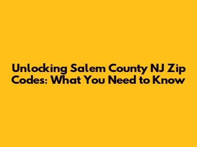 Unlocking Salem County NJ Zip Codes: What You Need To Know