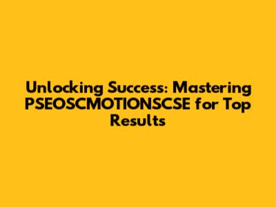 Unlocking Success: Mastering PSEOSCMOTIONSCSE For Top Results