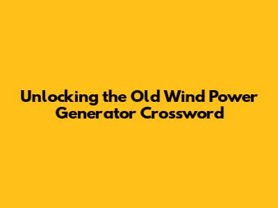 Unlocking The Old Wind Power Generator Crossword