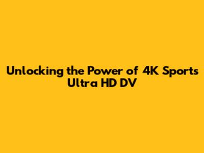 Unlocking The Power Of 4K Sports Ultra HD DV