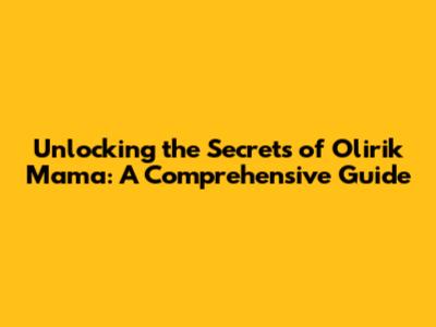 Unlocking The Secrets Of Olirik Mama: A Comprehensive Guide