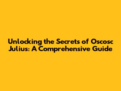 Unlocking The Secrets Of Oscosc Julius: A Comprehensive Guide