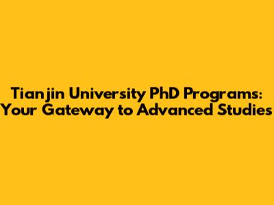 Unlocking Your Potential: Tianjin University PhD Programs