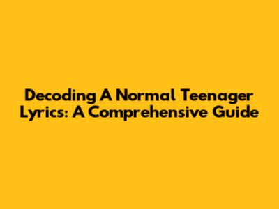 Hey music lovers! Ever gotten a song stuck in your head and just had to know what it's all about? Well, if you're vibing with the track "A Normal Teenager," you're in the right place. We're about to dive deep into the lyrics of "A Normal Teenager", exploring their meaning, the emotions they evoke, and how they resonate with the experiences of, well, a normal teenager (and maybe even a not-so-normal one!). Get ready to analyze the words, understand the context, and maybe even discover something new about yourself along the way. Let's get started, shall we?