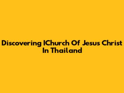Discovering IChurch Of Jesus Christ In Thailand
