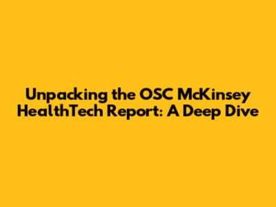 Unpacking The OSC McKinsey HealthTech Report: A Deep Dive