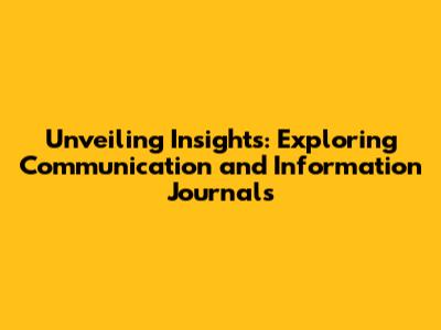 Unveiling Insights: Exploring Communication And Information Journals