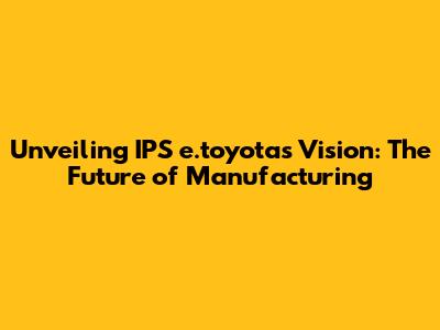 Unveiling IPS E.toyota's Vision: The Future Of Manufacturing