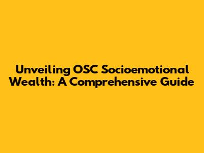Unveiling OSC Socioemotional Wealth: A Comprehensive Guide