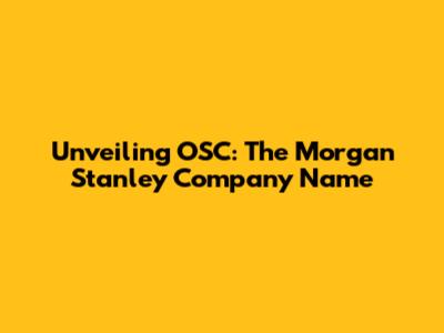 Unveiling OSC: The Morgan Stanley Company Name