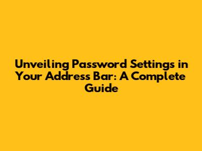 Unveiling Password Settings In Your Address Bar: A Complete Guide