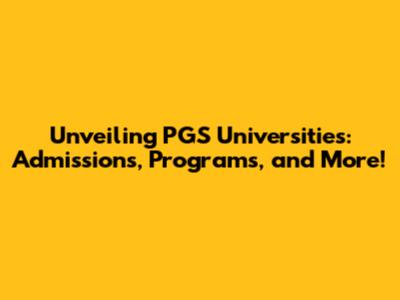 Unveiling PGS Universities: Admissions, Programs, And More!