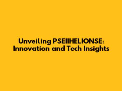 Unveiling PSEIIHELIONSE: Innovation And Tech Insights