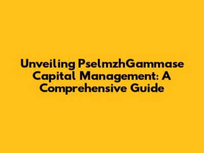 Unveiling PselmzhGammase Capital Management: A Comprehensive Guide
