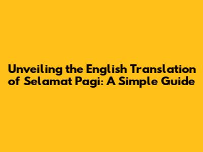 Unveiling The English Translation Of 'Selamat Pagi': A Simple Guide