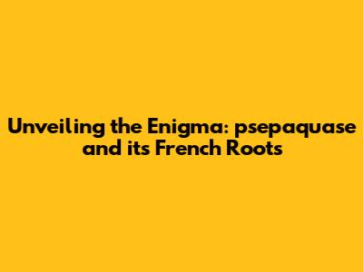 Unveiling The Enigma: Psepaquase And Its French Roots