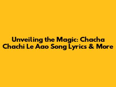 Unveiling The Magic: 'Chacha Chachi Le Aao' Song Lyrics & More