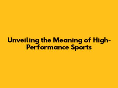 Unveiling The Meaning Of High-Performance Sports