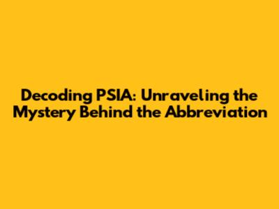 Unveiling The Meaning: What Does PSIA Stand For?