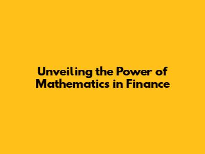 Unveiling The Power Of Mathematics In Finance
