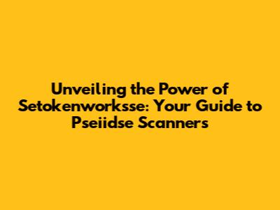 Unveiling The Power Of Setokenworksse: Your Guide To Pseiidse Scanners