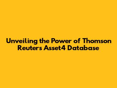 Unveiling The Power Of Thomson Reuters Asset4 Database