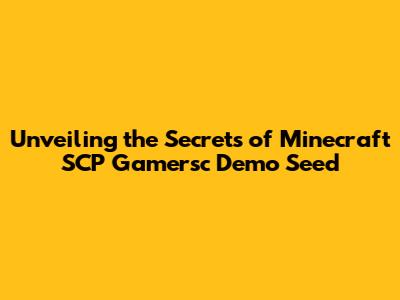 Unveiling The Secrets Of Minecraft SCP Gamersc Demo Seed
