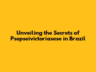 Unveiling The Secrets Of Psepseivictoriasese In Brazil